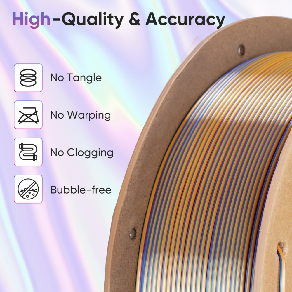 Dá vida às tuas impressões com cores vibrantes tipo arco-íris, com mudanças rápidas de cor a cada 5 a 8 metros, criando um efeito dinâmico e visualmente impactante.