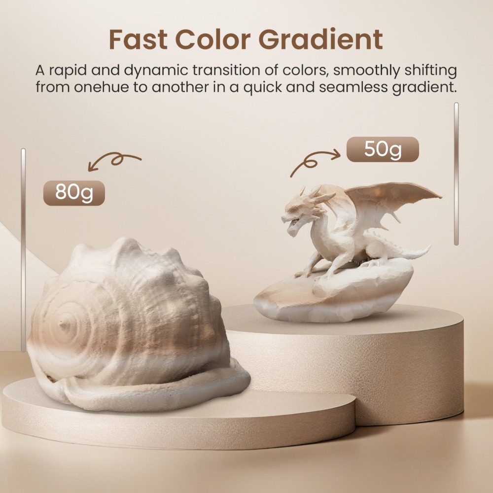 A sua superfície é suave e delicada, com linhas de camada pouco visíveis, e o processo de modelação é relativamente simples. Em comparação com o PLA comum, o PLA+ de alta velocidade apresenta elasticidade significativamente melhorada e pode também ser utilizado para imprimir produtos como brinquedos com formato de mola.