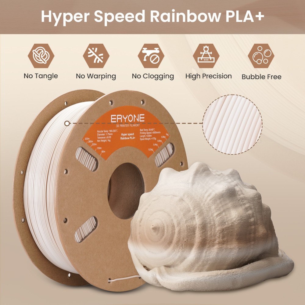 O filamento Eryone Hyper-Speed PLA+ é um material desenvolvido especificamente para impressão em alta velocidade, oferecendo excelente resistência e propriedades de tração superiores, o que o torna ideal para a produção de modelos de engenharia.