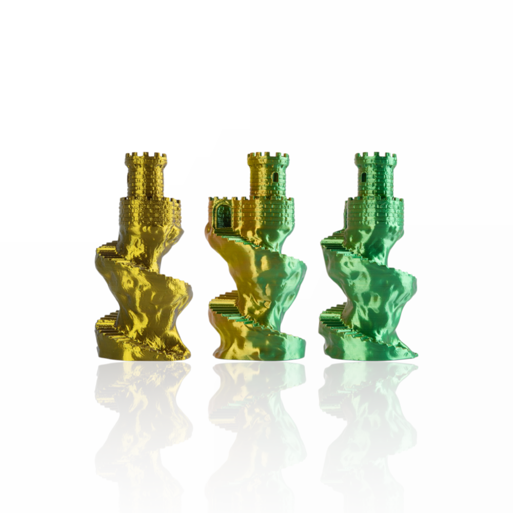 Magic SILK PLA é perfeito para aplicações como arte decorativa, design de interiores, projetos educacionais e prototipagem, onde a estética é tão importante quanto a funcionalidade. Aproveita este filamento para dar um toque de magia e cor aos teus projetos!
