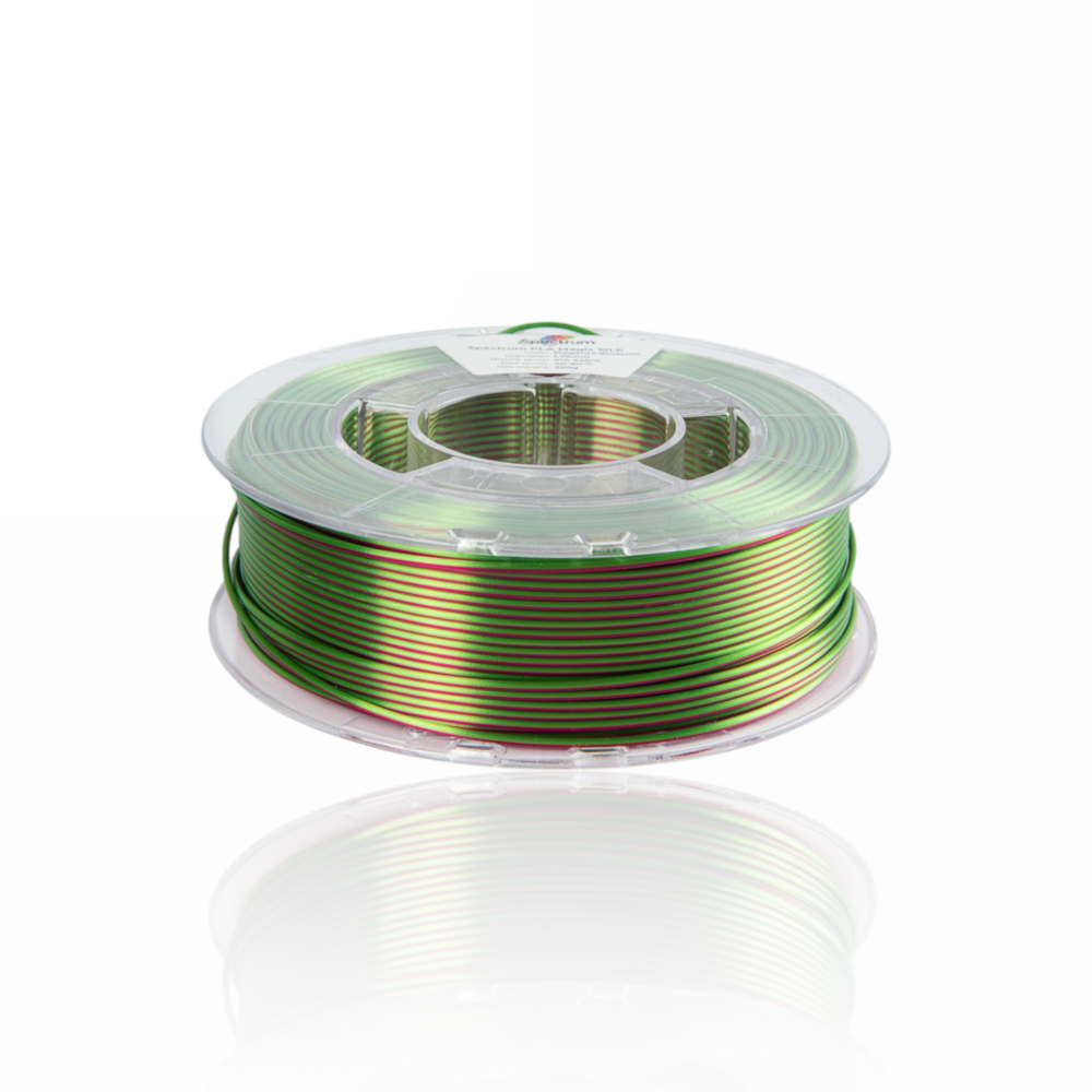 Descobre o poder transformador do Spectrum Magic SILK PLA, um filamento de PLA projetado para elevar a tua impressão 3D a um patamar artístico. Com a sua avançada tecnologia de co-extrusão, este filamento combina duas cores vibrantes numa só tira, criando um efeito óptico fascinante de mudança de cor que varia com a luz e o ângulo de visão. Este efeito não só dá vida aos teus projetos, mas também captura a atenção, tornando cada peça uma exposição de cor e movimento.