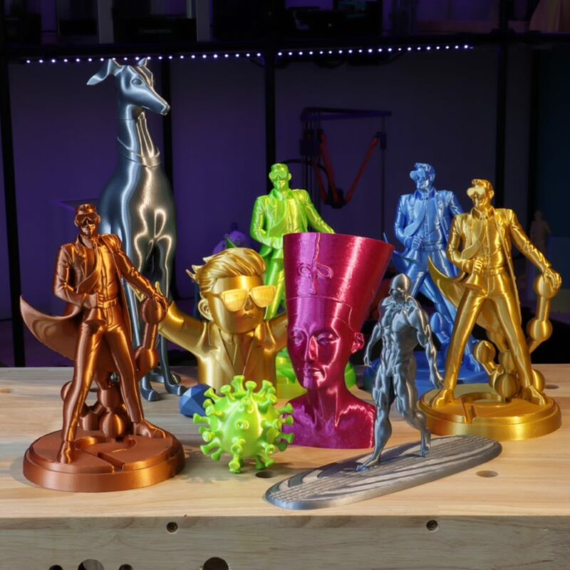 Acabamento Superficial de Seda – PolyLite™ PLA A seda foi formulada para dar peças com um incrível acabamento superficial brilhante como seda, sem necessidade de pós-processamento. O seu acabamento de superfície único torna-a uma escolha atractiva para modelos de exposição de destaque ou aplicações estéticas que requerem um acabamento de superfície vibrante ou metálico.