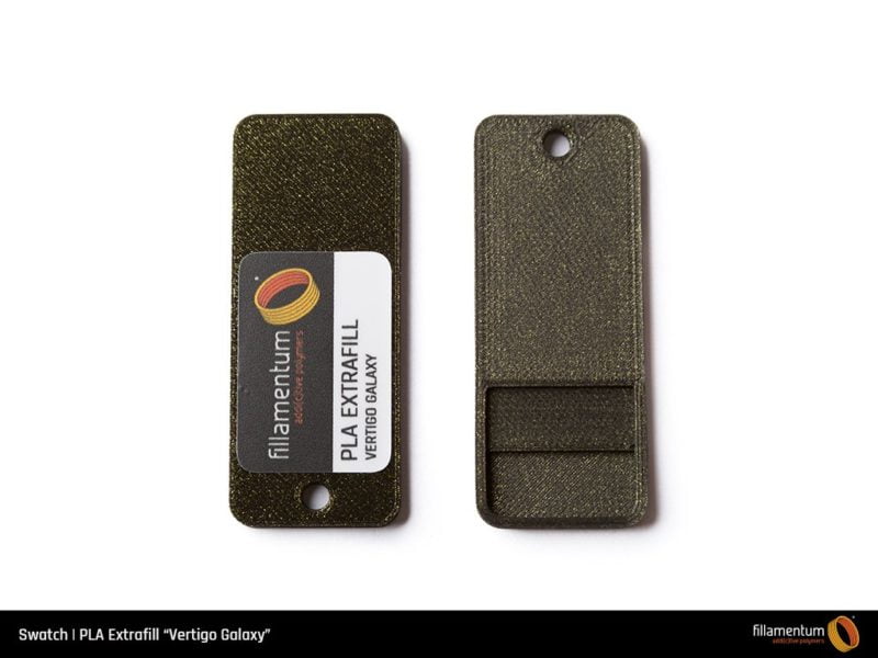 O filamento PLA Premium “Vertigo Galaxy” (1,75mm ou 2,85 m) é um filamento de alta qualidade fabricado na Europa para impressão 3D sob o nome comercial PLA Extrafill “Vertigo Galaxy” da Fillamentum. É conhecido pelo brilho incorporado no filamento que dá uma aparência brilhante em áreas com cores esverdeadas. Ao incorporar este brilho, o Vertigo Galaxy permite que você esconda as alturas da camada de peças impressas.