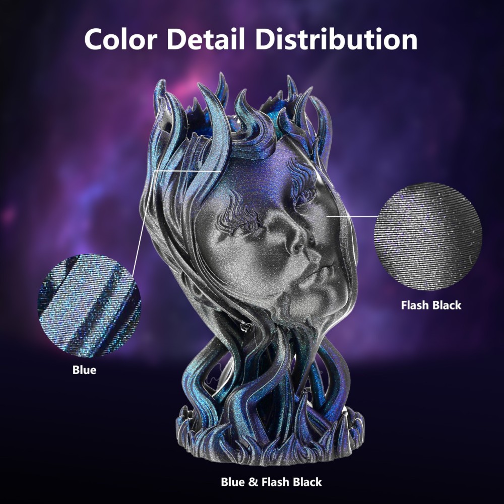 Dá vida às tuas impressões com cores vibrantes tipo arco-íris, com mudanças rápidas de cor a cada 5 a 8 metros, criando um efeito dinâmico e visualmente impactante.