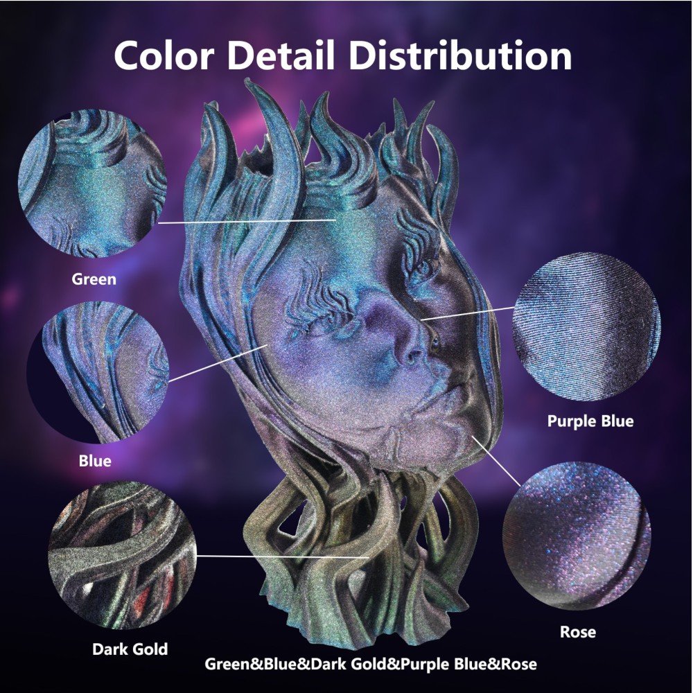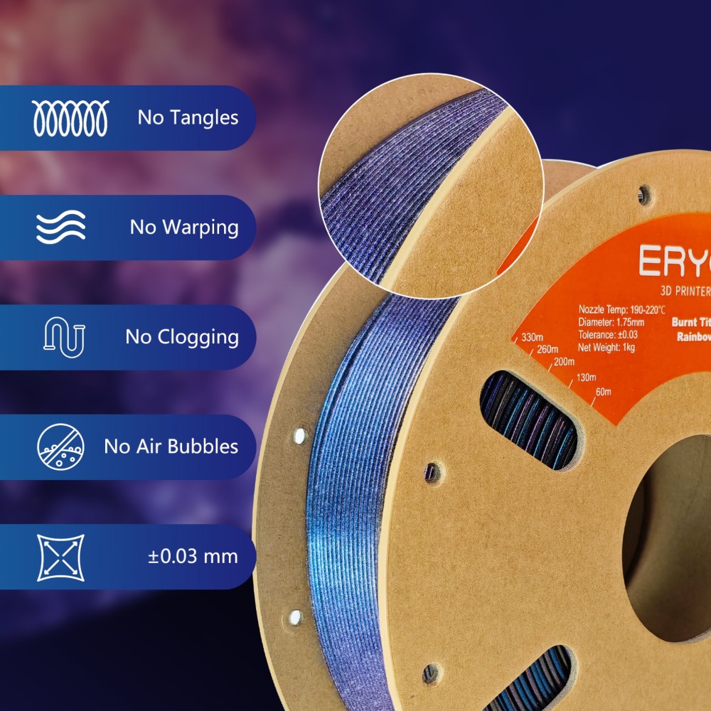 PLA Rainbow Burnt Titanium 1kg Iridescent (Rose Red, Dark Gold, Green, Blue and Purple Blue) – ERYONE