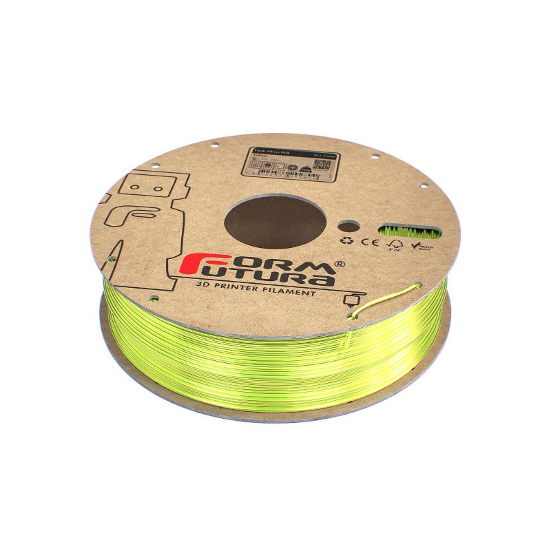 *) If you use a vanadium steel / hardened steel and/or tungsten carbide nozzle then please raise the printing temperature up to 240 – 245° C to maintain the high gloss. If you still have trouble losing the shine, you can drop the part cooling fan to 50% or lower. For brass and copper nozzles you can print at215 – 225° C. Please do feel free to experiment with these settings.