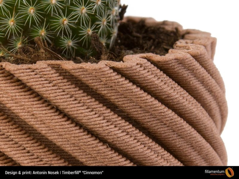 Com o filamento PLA Timberfill Cinnamon (1,75mm ou 2,85mm) é feito com mistura de material à base de madeira. A resistência é a mesma de materiais de PLA, no entanto o acabamento e toque é semelhante a madeira.