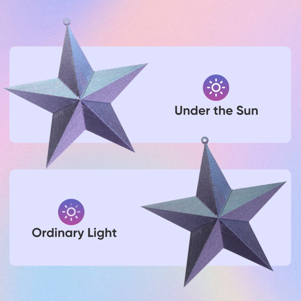 O filamento PLA Burnt Titanium Tri-Color muda de tons conforme a luz e o ângulo de visualização, criando efeitos visuais deslumbrantes que dão vida e movimento às suas impressões 3D.