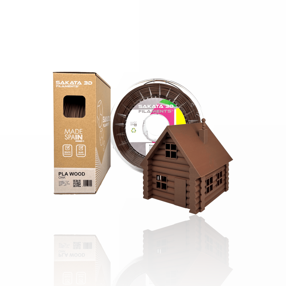 O filamento PLA TEXTURE WOOD da Sakata 3D é composto por PLA e uma elevada percentagem de fibras de madeira. É um material biodegradável, desenvolvido especialmente para impressoras 3D. Apresenta baixa abrasão e excelente fluidez, o que permite a utilização de um bico de 0,4 mm, garantindo um efeito realista tanto ao toque como ao cheiro — sem o risco de acumulação de material ou desgaste prematuro do bico.
