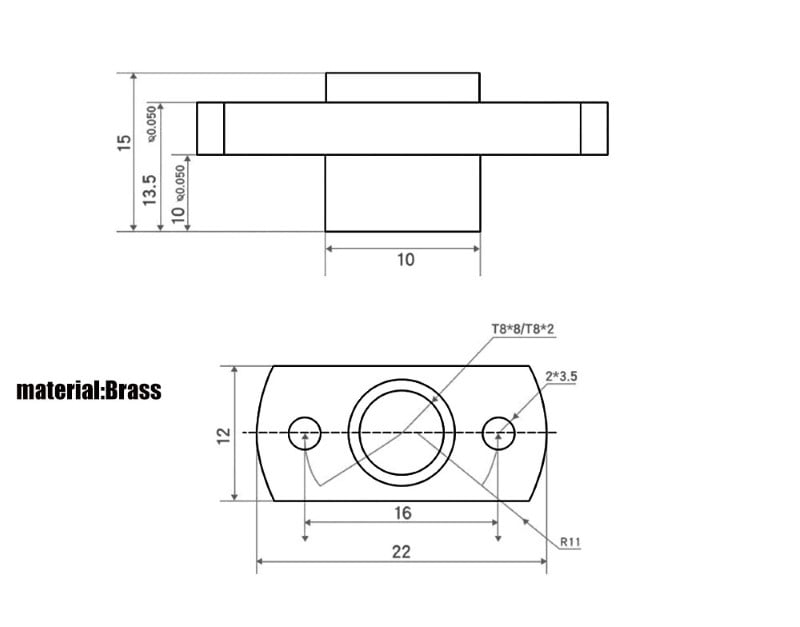 Porca T8 H-TYPE (lead screw) para Varões Trapezoidal T8 8mm Pitch 2mm Lead (Passo) 8mm