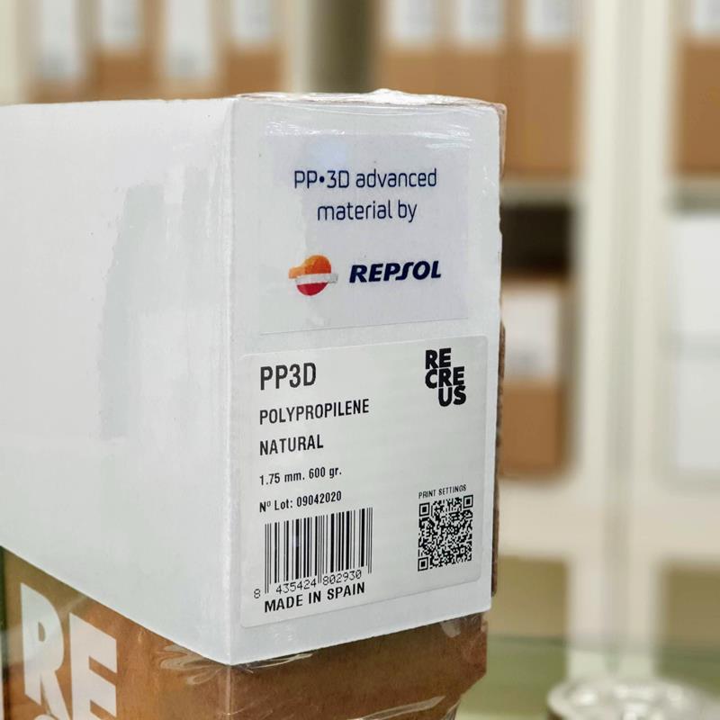 O revolucionário filamento de polipropileno (PP) PP · 3D da Recreus foi desenvolvido em conjunto com a Repsol.