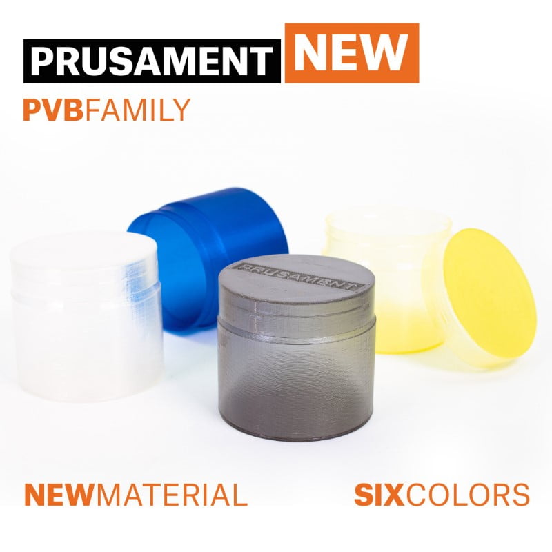 Estamos entusiasmados por anunciar que voltamos a expandir a nossa carteira do Prusament, desta vez com 6 cores de material novo e não convencional PVB.