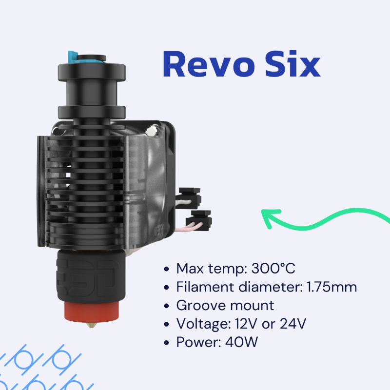 O Revo Six Hotend é um substituto direto do seu E3D V6 Hotend e oferece-lhe todas as vantagens do sistema E3D RapidChange Revo.