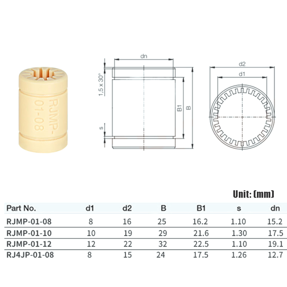 Rolamento autolubrificante Plastico RJMP01-10 10mm (Self-lubricating Plastic linear bearing ) – AIMSOAR