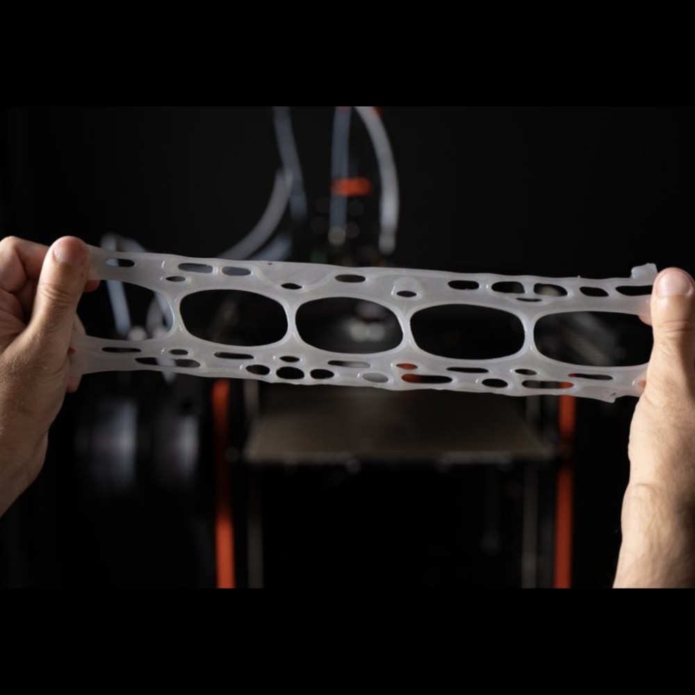 Isto é muito mais do que um novo extrusor — é uma tecnologia completamente nova para a Prusa XL. Abre a possibilidade de imprimir com “filamentos líquidos”: uma infinidade de materiais que não podem ser transformados num filamento plástico tradicional. O primeiro material é silicone real e resistente ao calor. E isto é apenas o começo — poliuretanos, epóxis industriais e outras pastas estão já no horizonte.