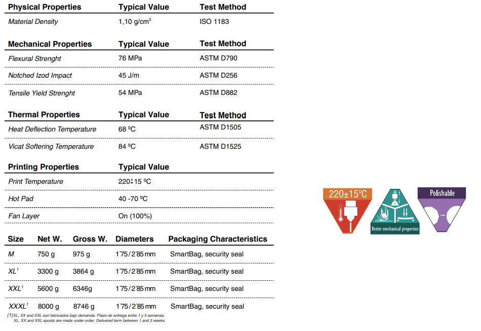 Este é um filamento fabricado em Espanha, segundo as mais rigorosas normas de qualidade.