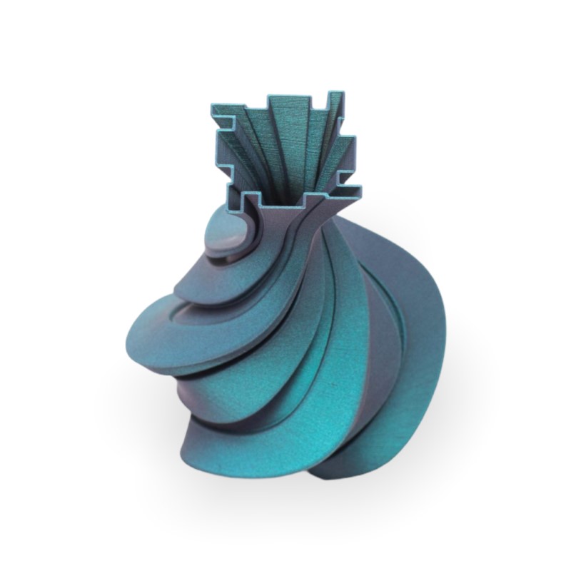 Filamento de impressão 3D baseado em PLA que oferece um efeito óptico iridescente na peça, mudando a cor dependendo do ângulo em que olha para a peça. Graças à sua fácil impressão, pode fazer peças e objectos na maioria das impressoras, o acabamento brilhante esconde as camadas de impressão, obtendo superfícies lisas com um acabamento único.