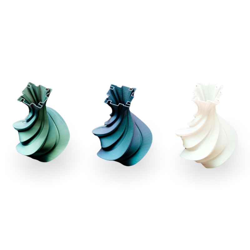 Para além disso, a impressão de superfícies brilhantes esconde as camadas da peça, deixando uma superfície completamente lisa.