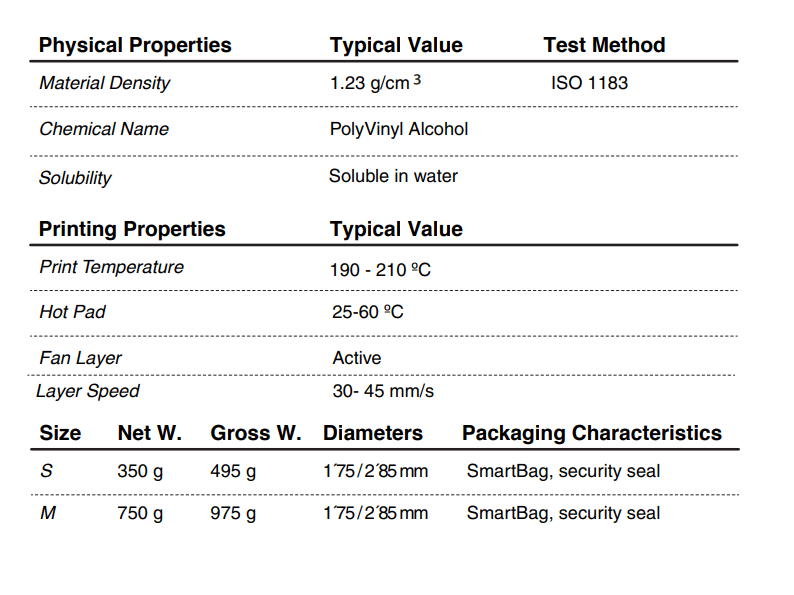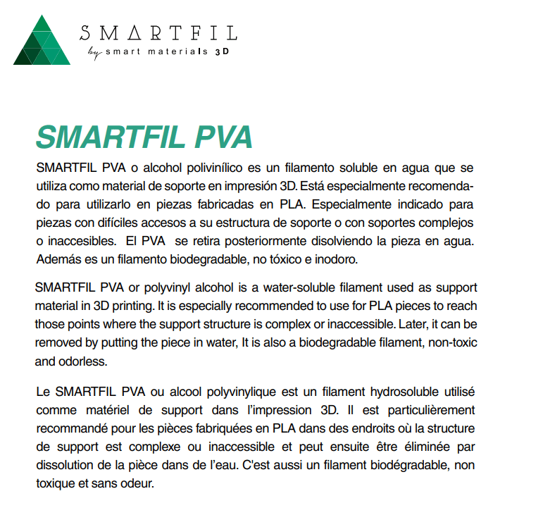 SMARTFIL PVA é um filamento solúvel em água, sendo utilizado como material para suportes na impressão 3D.