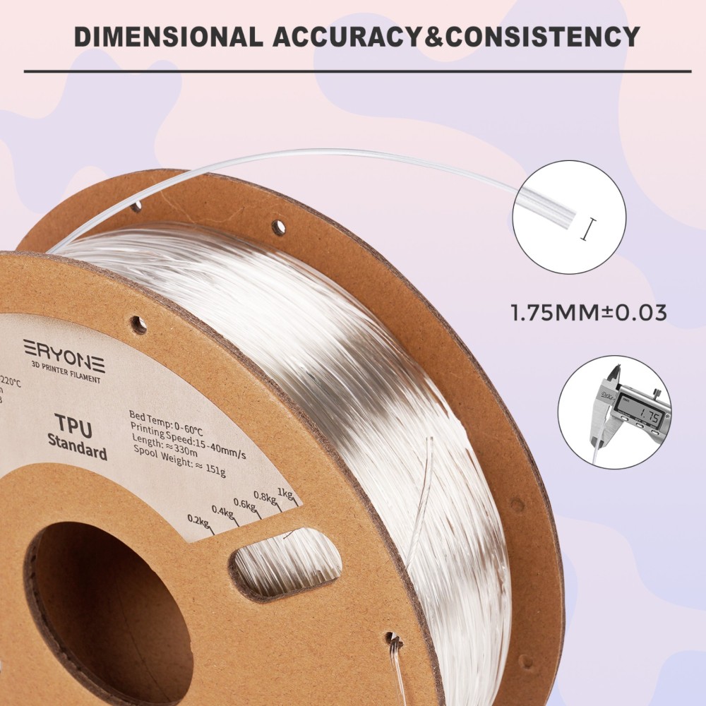 O nosso filamento flexível ERYONE TPU é um filamento à base de poliuretano termoplástico (TPU).