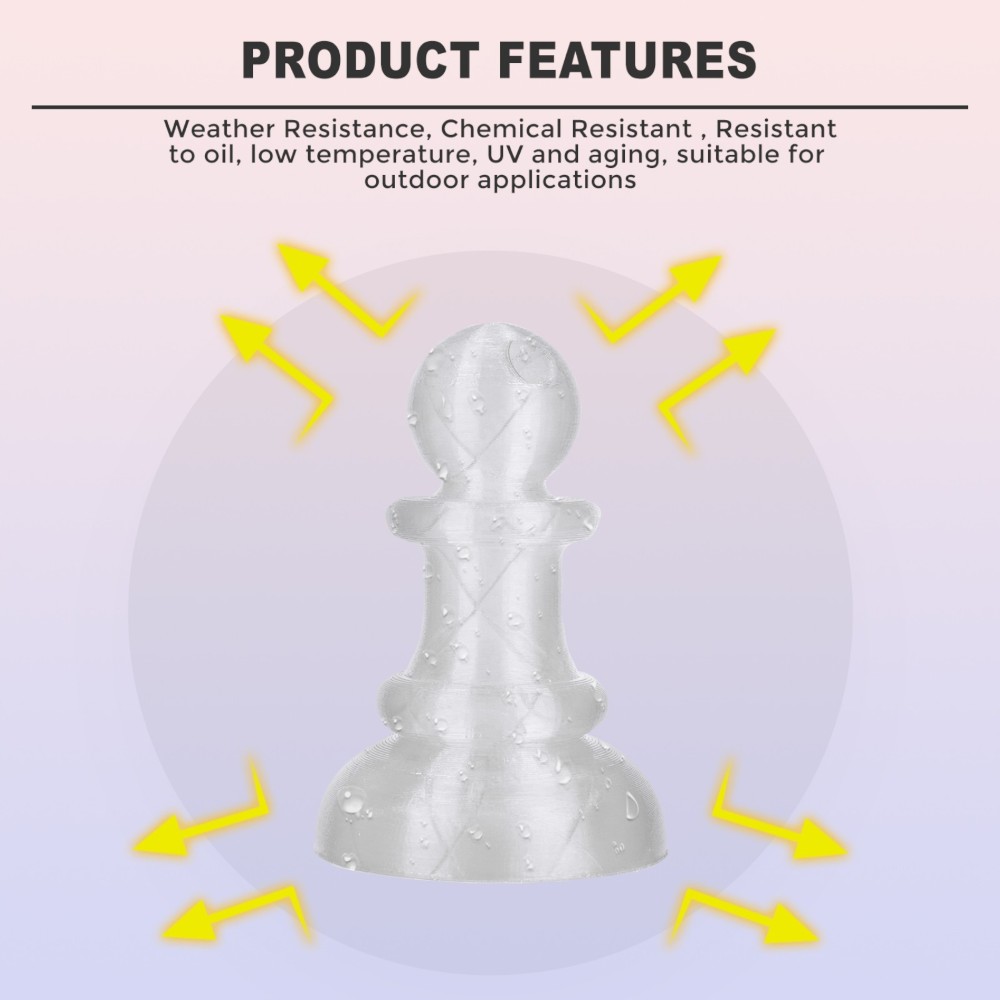 A característica mais notável deste material é a sua flexibilidade. Para além disso, o TPU é muito durável e difícil de partir, com excelente capacidade de absorção de impacto, tornando-o ideal para peças que necessitam de resistência e elasticidade.