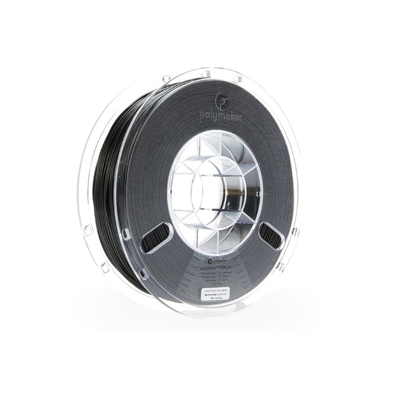 Isto proporciona peças impressas com uma dureza incrível que se pode esticar mais de 6 vezes antes de se partir. Apresenta mais ductilidade do que o PolyFlex TPU95 (dureza Shore 95A) mantendo a mesma dureza de impressão graças a um melhor índice de fusão. A sua resistência aos raios UV abre a porta a aplicações exteriores onde a flexibilidade e durabilidade são necessárias. O PolyFlex TPU90 está disponível em preto, branco, cinzento e azul-teal.