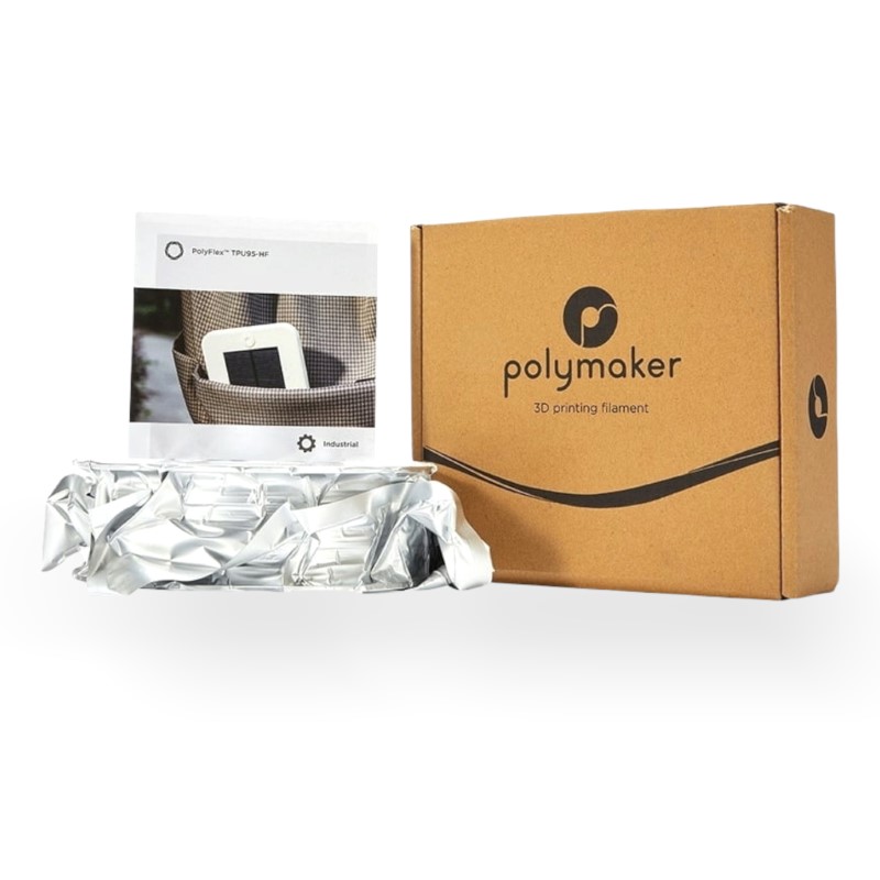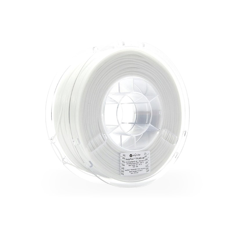 O aumento do índice de fusão permite que o material tenha uma baixa viscosidade a baixas temperaturas, portanto uma maior pressão pode ser alcançada na extremidade a quente, resultando em velocidades de impressão mais rápidas. Ao contrário de outros TPUs no mercado, o TPU95-HF não requer uma temperatura elevada para impressão a alta velocidade, o que resulta em melhor arrefecimento, melhor qualidade de superfície, sobreposições mais acentuadas e detalhes mais finos. O PolyFlex TPU95-HF está disponível em preto e branco.