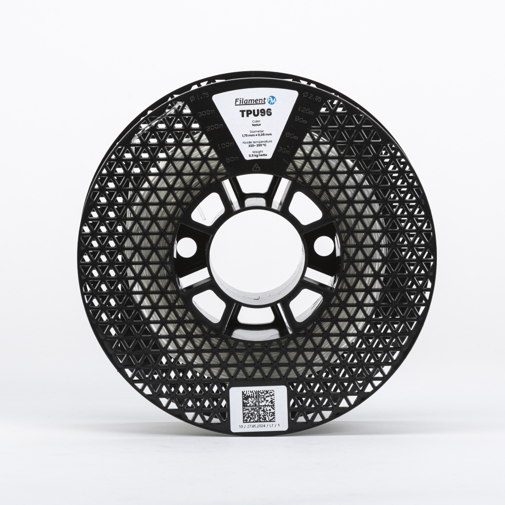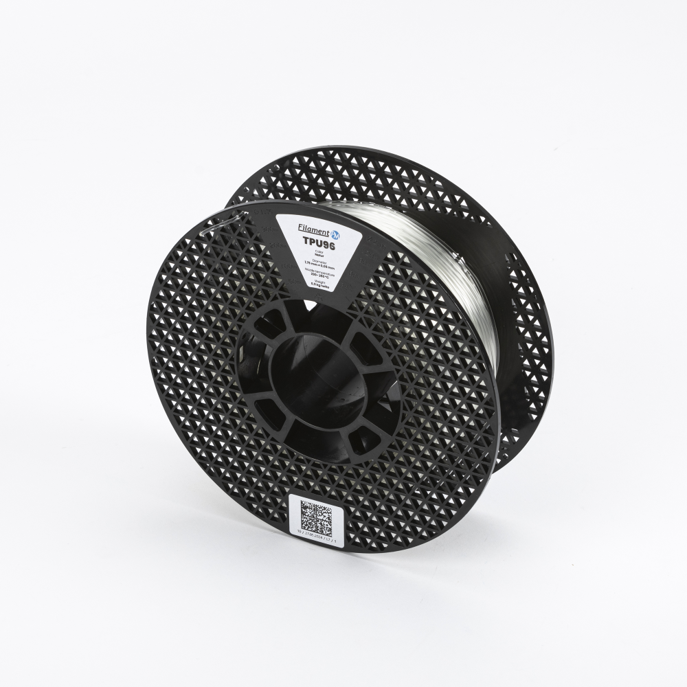 O TPU 96 está disponível em bobinas de 0,5 kg e é ideal para produção personalizada e rápida de componentes industriais, com resistência à temperatura superior e capacidade de produzir peças de borracha industriais em pequenos volumes.