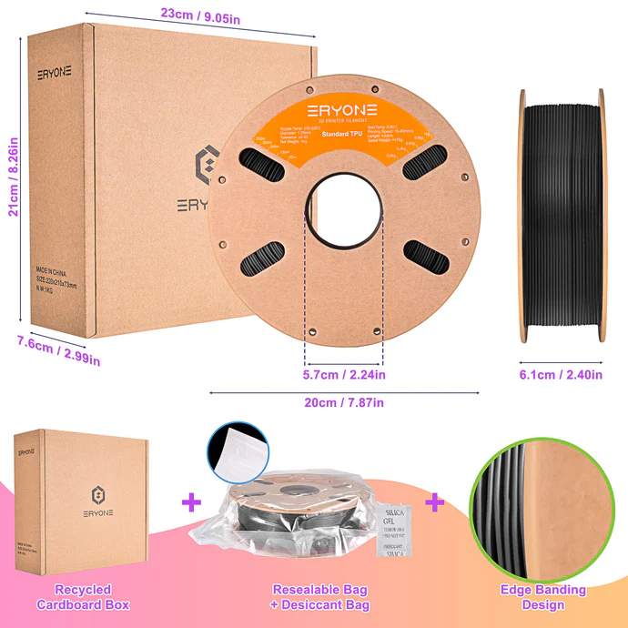 O nosso filamento flexível ERYONE TPU é um filamento à base de poliuretano termoplástico (TPU).
