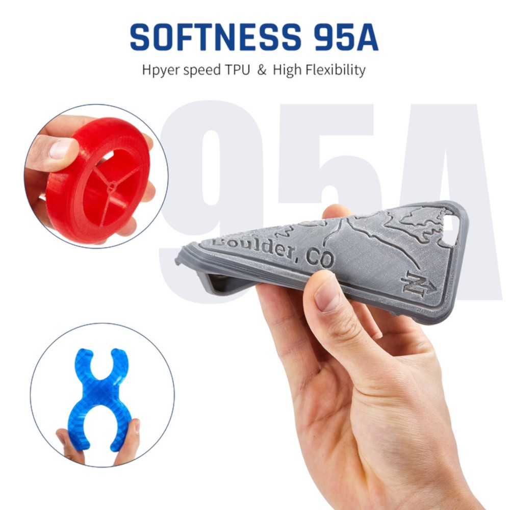 Com dureza Shore 95A e excelente adesão à mesa, é fácil de imprimir, mesmo em impressoras 3D básicas, como a Creality Ender 3.