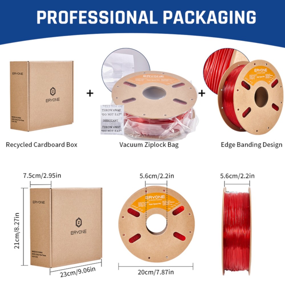 O nosso filamento flexível ERYONE TPU é um filamento à base de poliuretano termoplástico (TPU).
