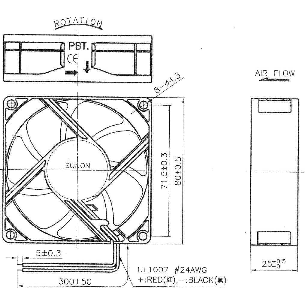 Tamanho do ventilador 80x80x25mm
